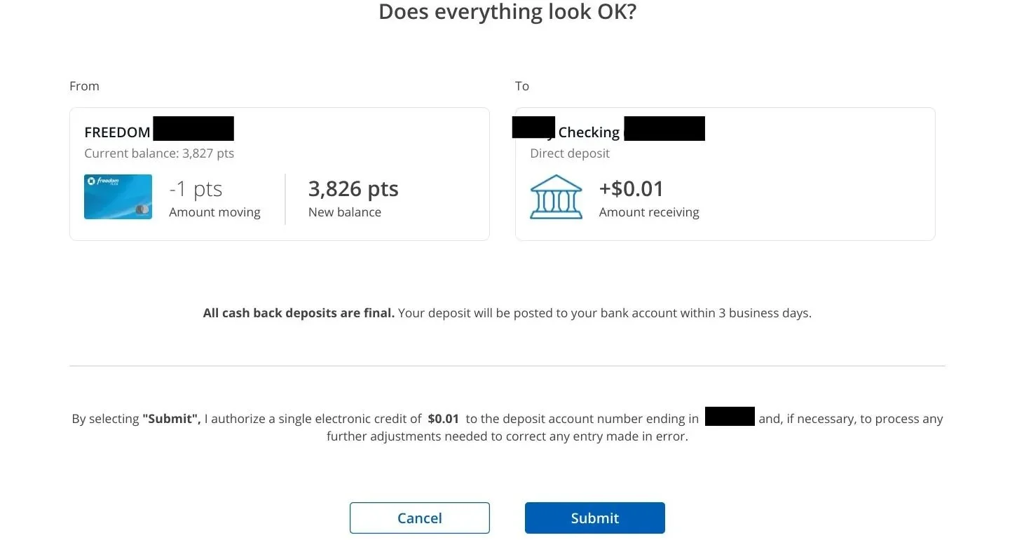 By making the cash-to-points calculator automatic rather than manual, users can make real-time updates to how many points they want to convert. Deciding which account you want to make your deposit into has been pre-selected rather than something to think about every time. And removing extraneous on-screen content allows savvy users to get their cash and go.