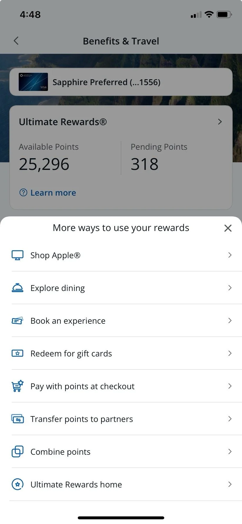 Customer feedback has shown that while the desktop version of the navigation has been received well, users accessing the rewards experience through their phones have more trouble finding and guiding themselves through this more compact version of the nav. In an effort to ease this friction, we developed a ‘redeem-only’ version that customers have access to when entering through their account dashboard or the Chase Benefits experience. This alternate navigation elevates the most popular redemption options, but also gives users the option to see their rewards overview on the homepage.
